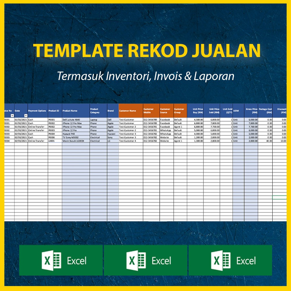 Akaun Contoh Rekod Jualan Harian : Template Rekod Jualan Excel Termasuk Inventori Invois Laporan Rekemen My